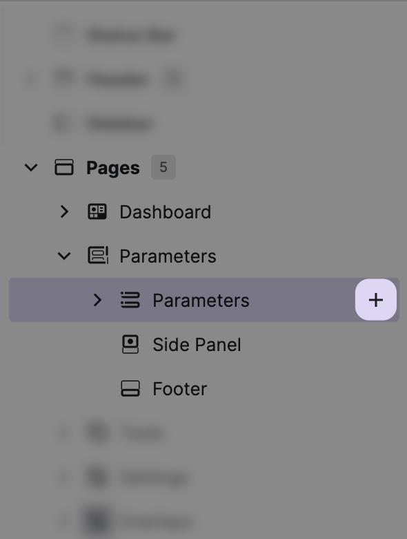 Within the content tree, click the + button next to the Parameters