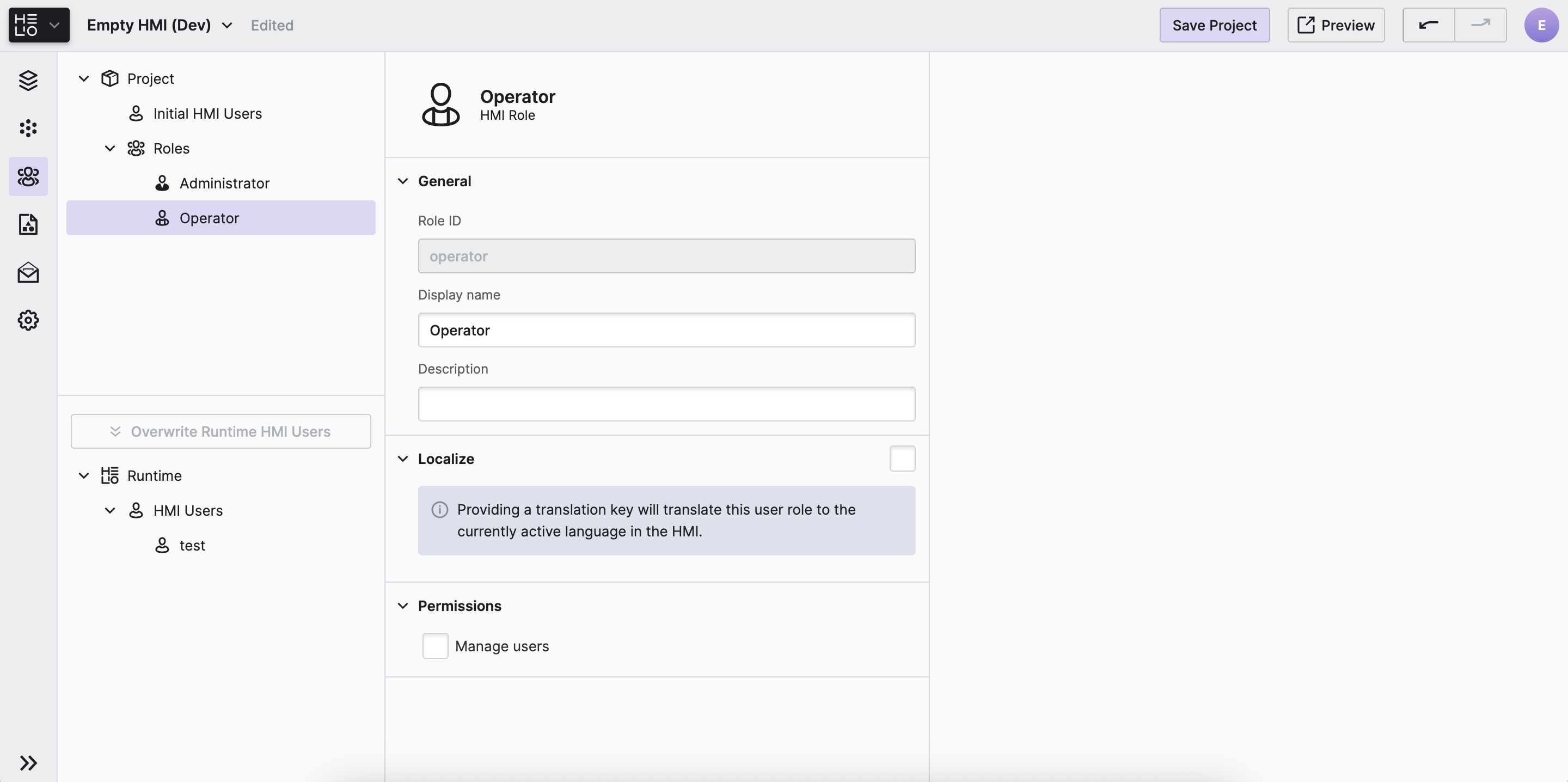 Fortunately, this isn't a significant issue. Simply click Overwrite Runtime HMI Users and confirm the resulting dialog to reset the