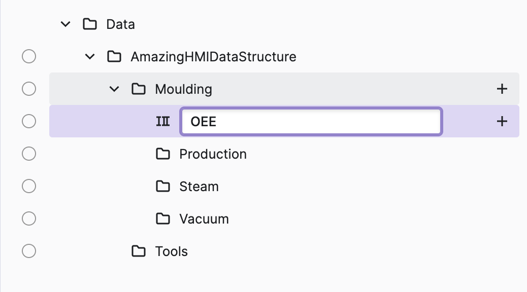 In this example, the product team wanted to organize the data according to how it's used in the HMI. But feel free to create any structure that suits your needs.