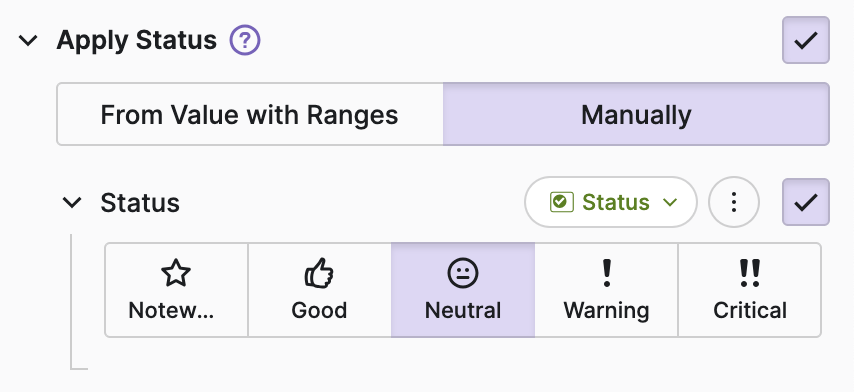 Neutral | The default level. | Although it doesn't communicate any message, this level is important because it allows you to temporarily turn off the status display when applied. |
