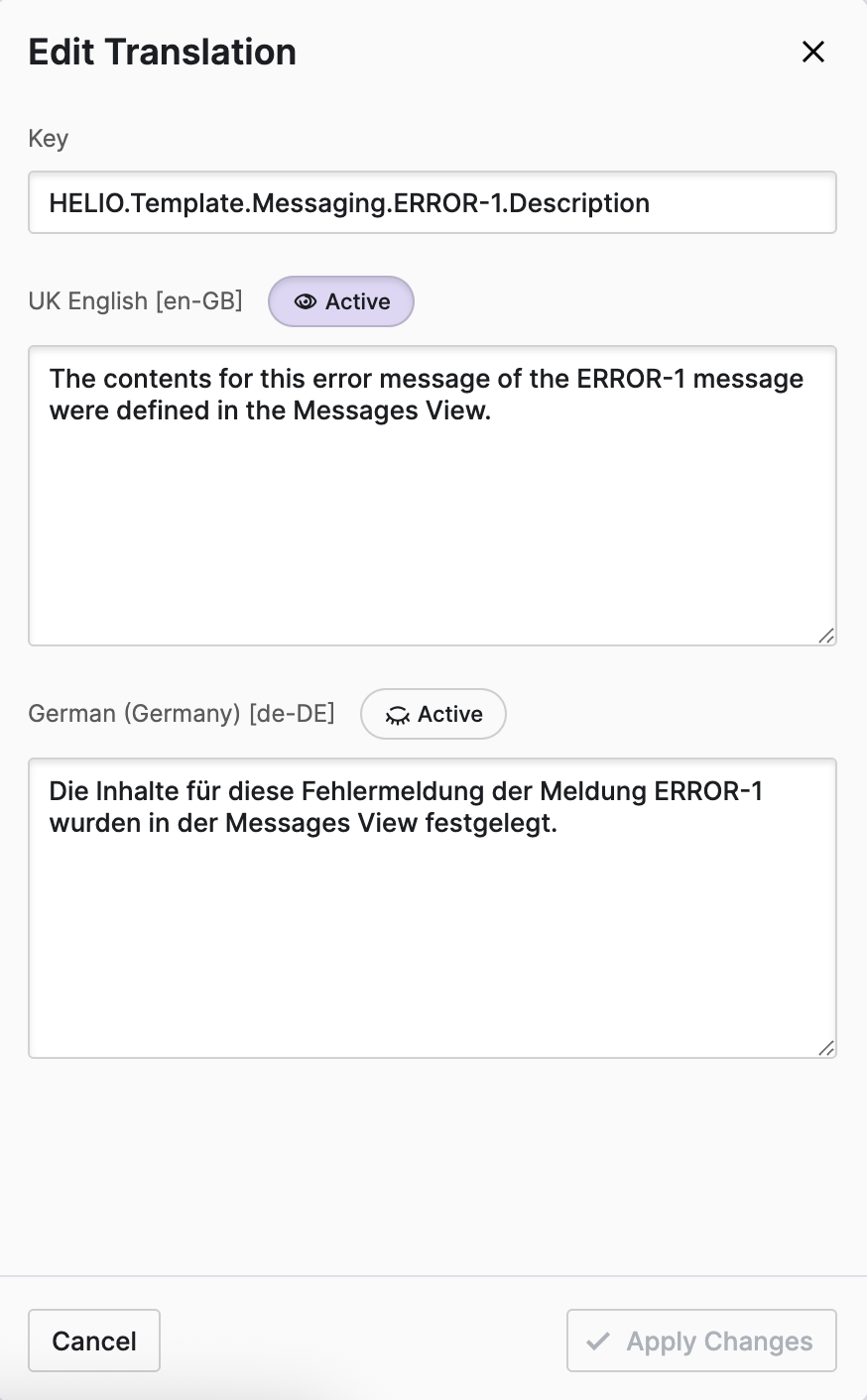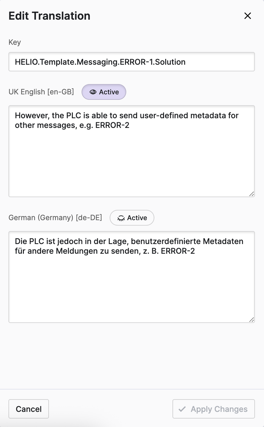• Make sure you're choosing unique translation keys and provide translations for each language of your project.